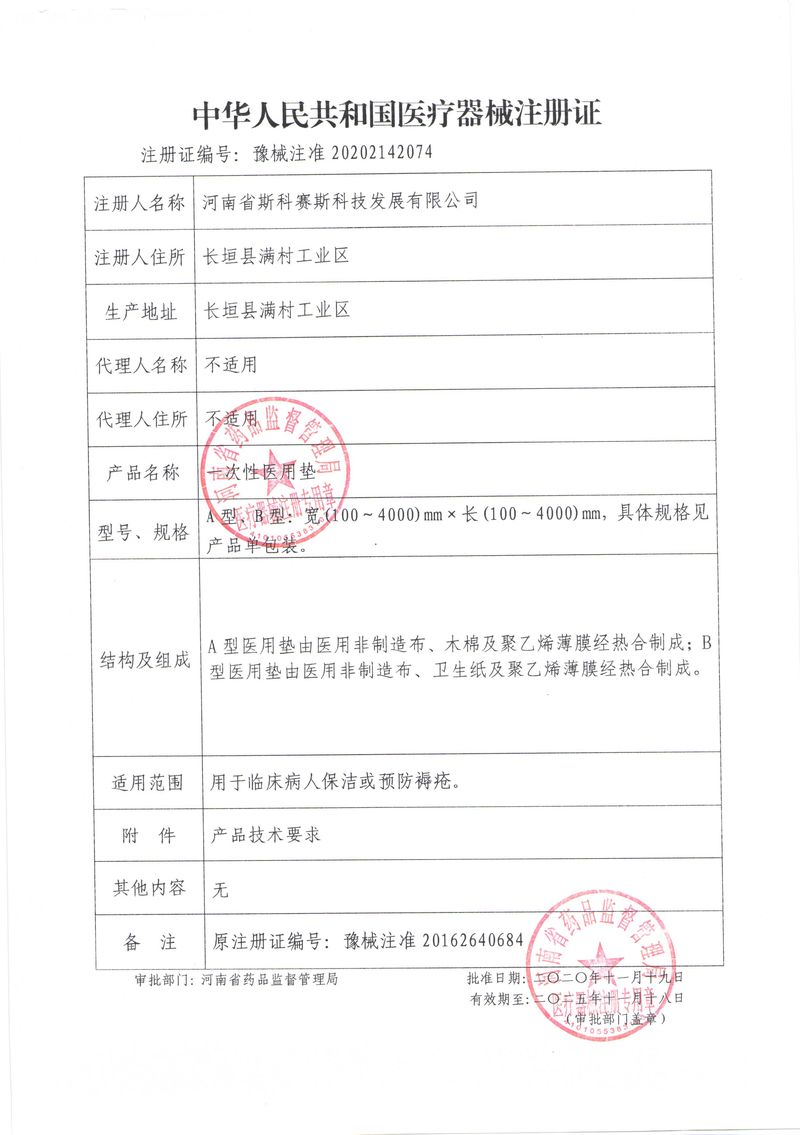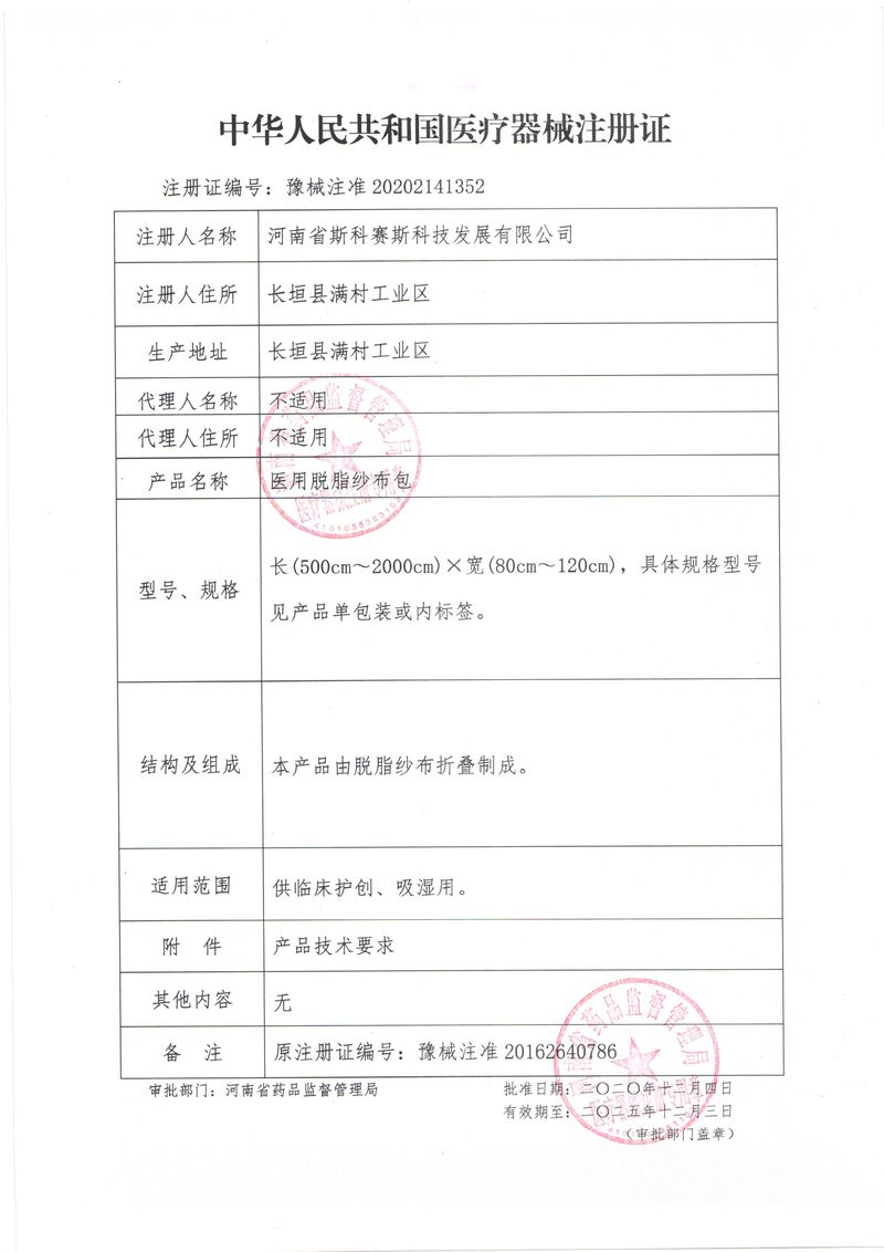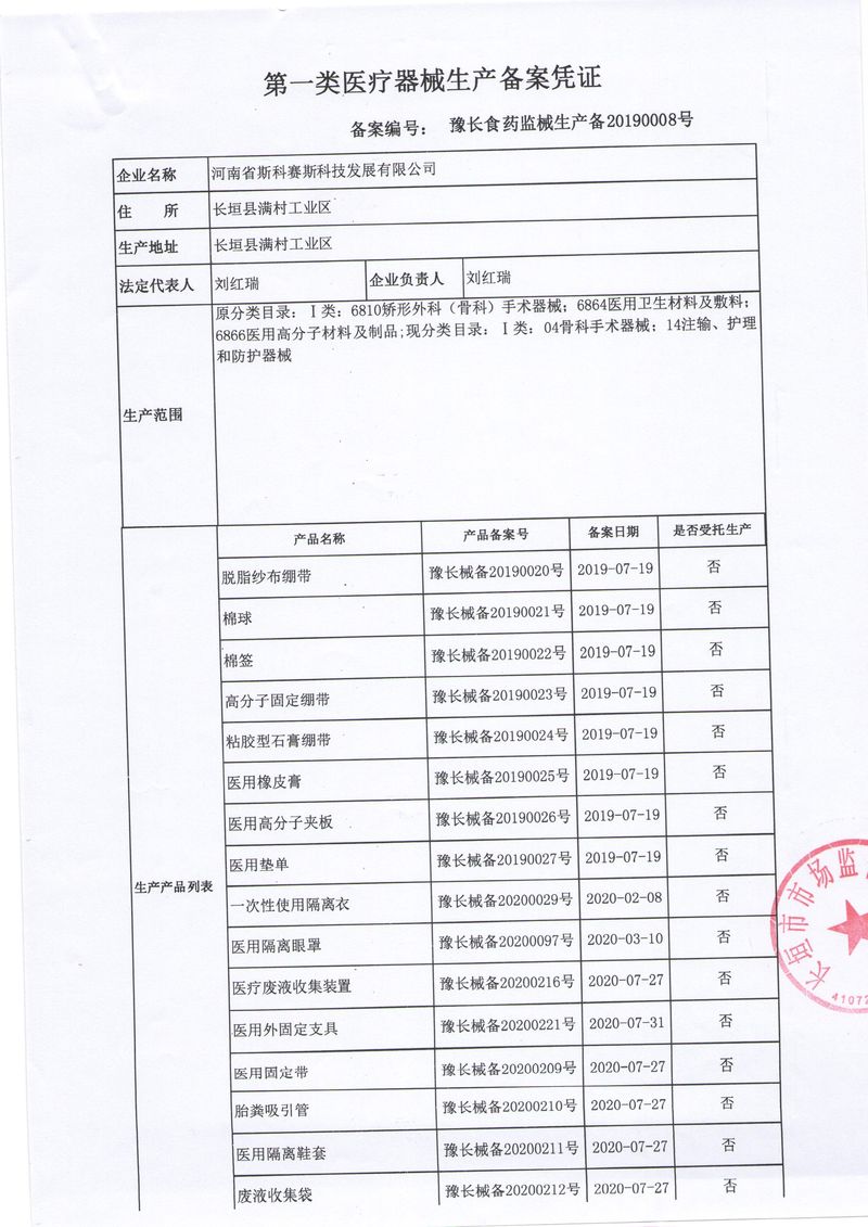 河南省斯科賽斯科技發(fā)展有限公司創(chuàng)建于 2011 年,位于“中國醫(yī)療耗材之都”- 河南省長垣縣,西臨 308 省道,南靠新菏鐵路,北依長濟高速,交通便捷,經(jīng)濟發(fā)達,環(huán)境優(yōu)美。斯科賽斯積極進入醫(yī)療健康和服務(wù)領(lǐng)域,秉承為用戶創(chuàng)造價值的理念,專注于醫(yī)用耗材解決方案的研發(fā)和運營,并為用戶提供完善的產(chǎn)品解決方案;  斯科賽斯主要生產(chǎn)醫(yī)用麻醉系列、醫(yī)用高分子系列、醫(yī)用敷料包系列、醫(yī)用無紡布系列、醫(yī)用防護系列、醫(yī)用脫脂棉系列、生物材料制品類等七大類、100 多個品種、400 多個規(guī)格的產(chǎn)品。公司占地面積約 30000 平方米,建筑面積20000 平方米,擁有 10 萬級的凈化車間總面積 10000 平方米。擁有國際先進水平的生產(chǎn)設(shè)備和檢測儀器,技術(shù)裝備精良,檢測手段完善,為醫(yī)療行業(yè)的不斷發(fā)展進步提供保障。公司順利通過 ISO9001、ISO13485 質(zhì)量管理體系認證。  斯科賽斯堅持研發(fā)高科技新產(chǎn)品,力爭在醫(yī)療器械關(guān)鍵領(lǐng)域取得技術(shù)和研發(fā)的重大突破;立足國內(nèi)和國際兩個市場,逐步實現(xiàn)管理理念、經(jīng)營機制、人力資源、技術(shù)、產(chǎn)品、市場等全方位對接,提高企業(yè)的核心競爭力;過去的歲月里,斯科賽斯砥礪前行,誠信務(wù)實,銳意進取,不斷創(chuàng)新,用自己的睿智和辛勞,以富有責(zé)任感的使命,在探索中追求,在追求中超越,致力于成為值得信賴的醫(yī)療用品生產(chǎn)企業(yè)!在未來的日子里,斯科賽斯將一如既往豪情滿懷,信心百倍,攜手并肩,執(zhí)著追求,向更高的的目標(biāo)前進,鑄造新的輝煌!